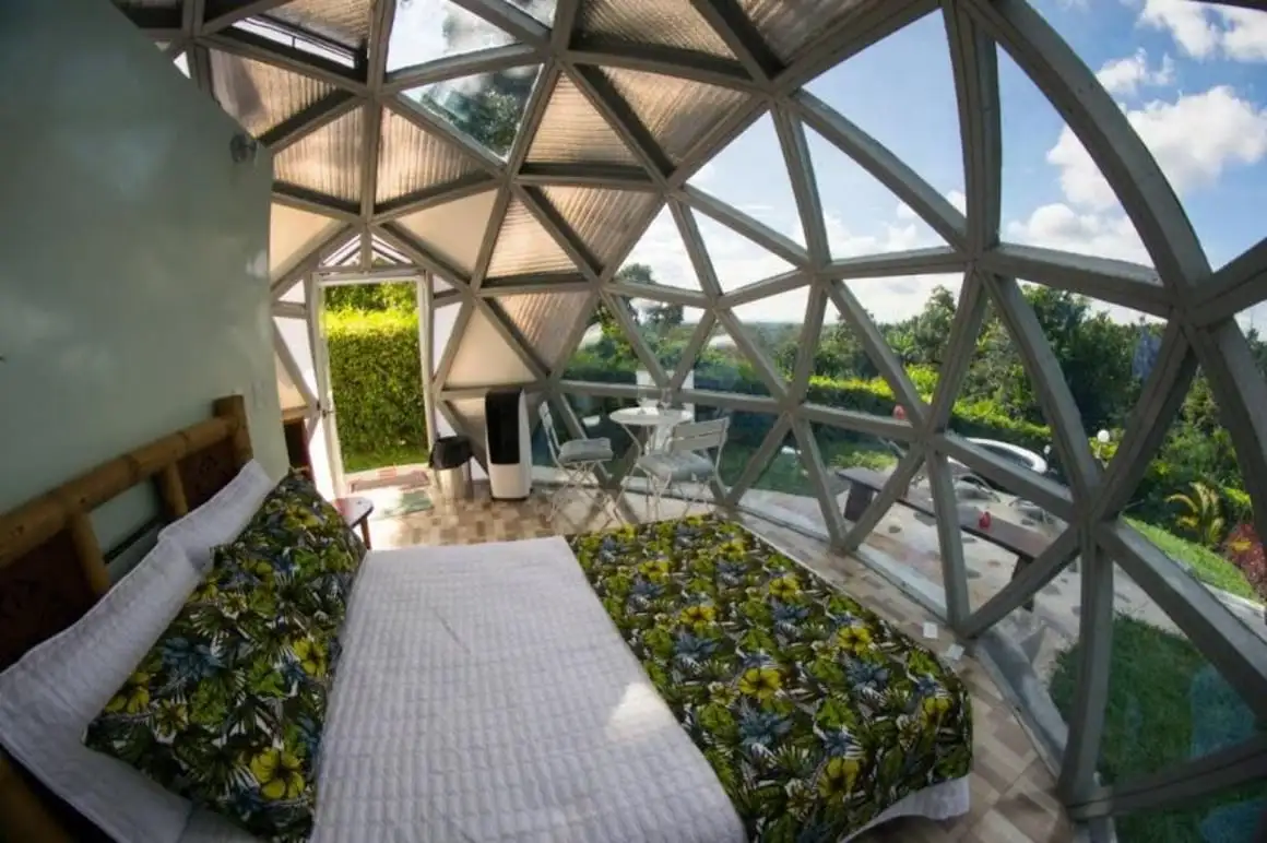 コロンビアのコーヒー産地の中心部、ペレイラの郊外に位置するこの素晴らしいエコドームでは、素晴らしい景色、ホットタブ、朝食が含まれています。毎晩、バブル ドーム テントからは素晴らしい星の景色を眺めながら眠りにつきます。