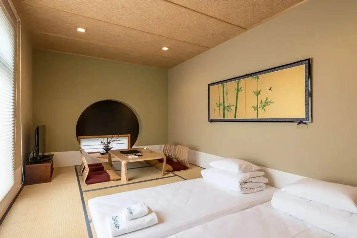 京都の中心部に位置し、畳、布団、緑茶の儀式などの伝統的なディテールを備えたこの旅館は、手頃な価格で日本文化を体験できる究極のスポットです。